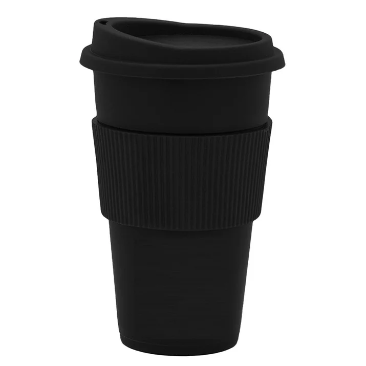 vaso plástico para café con agarre de silicona negro 6577