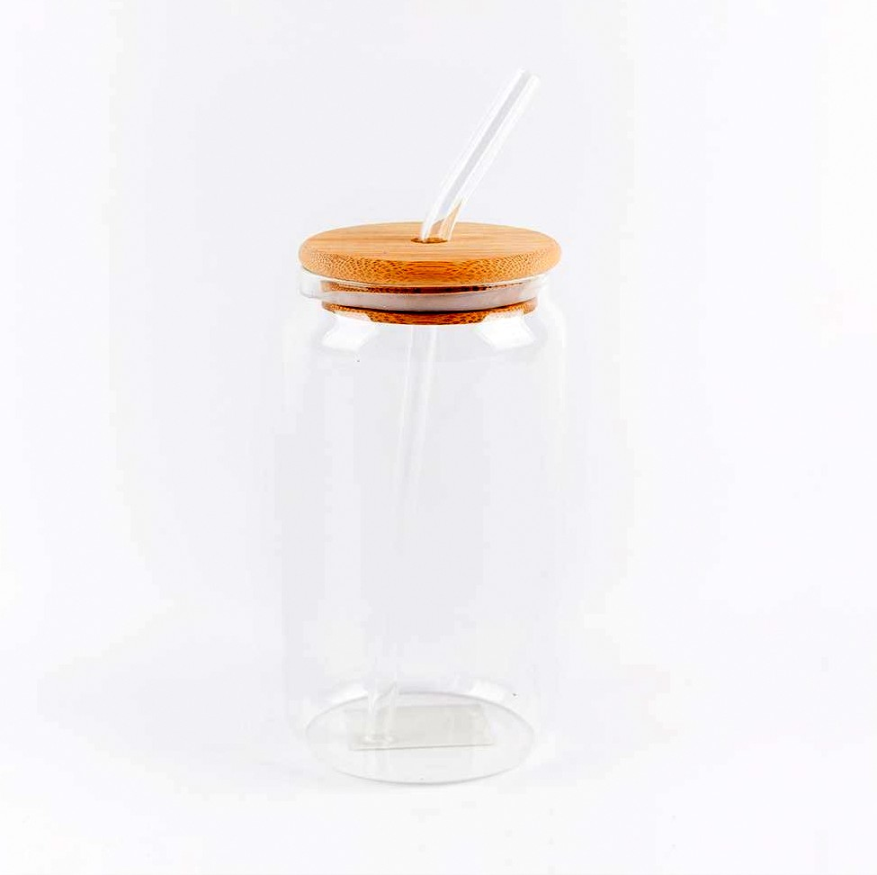 vaso de vidrio c/ tapa bamboo y sorbete de vidrio