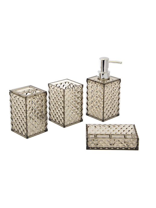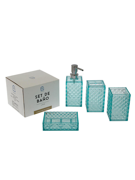 dispenser de Jabon (6,5x6,5x17 cm), Jabonera (8x12x3 cm), vaso (6,5x6,5x10,5 cm) y porta Cepillo de Dientes (6,5x6,5x10,8 cm