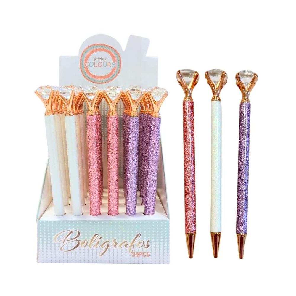 boligrafo metal diseño glitter pastel c/ giro y diamante