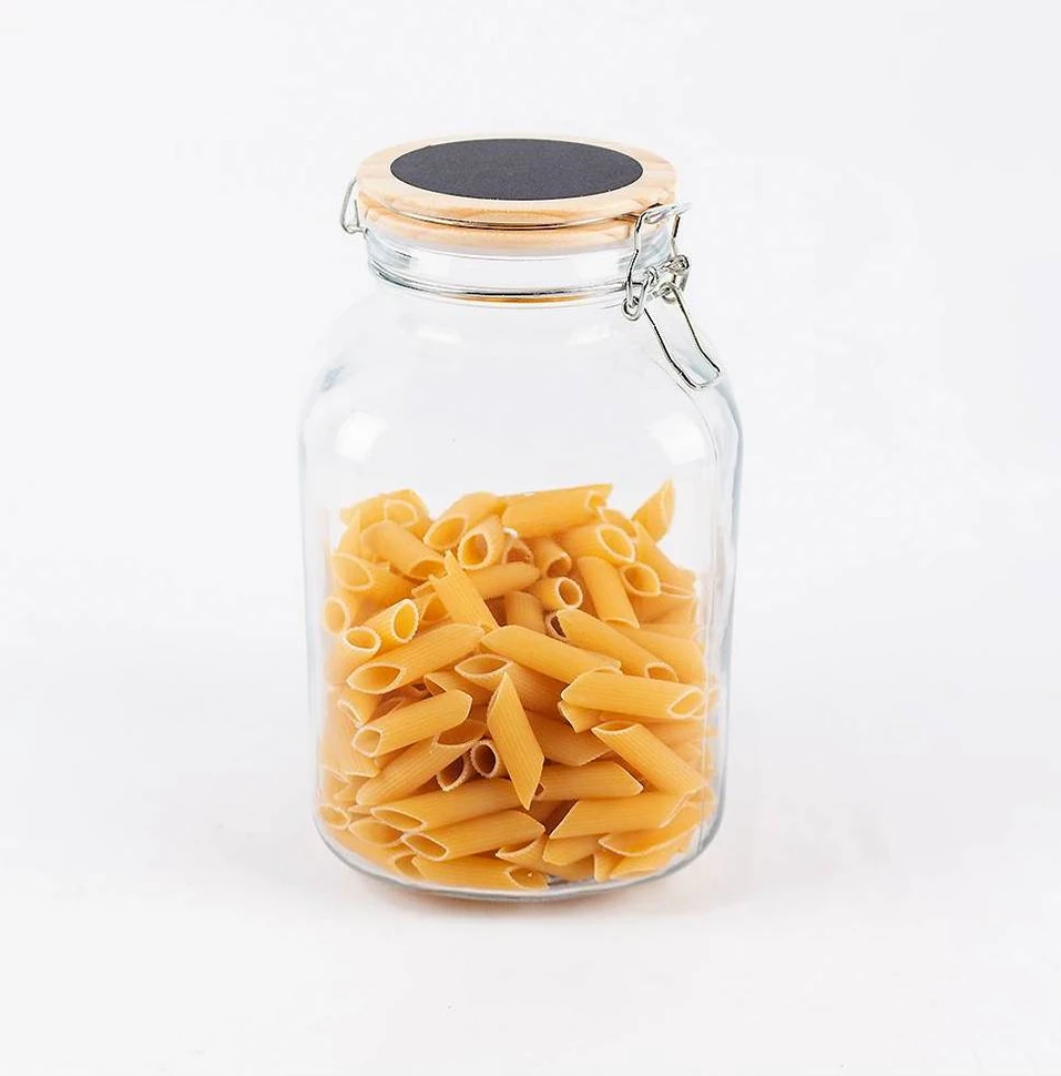 frasco de vidrio tapa bambú con pizarra