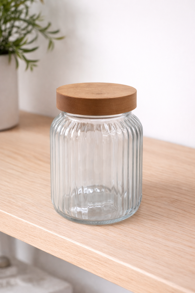 frasco de vidrio acanalado