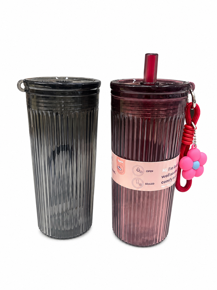 vaso plástico con tapa sorbete y adorno colgante