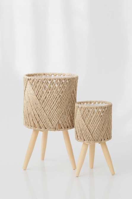 set x 2 porta macetas de bambú con patas de madera